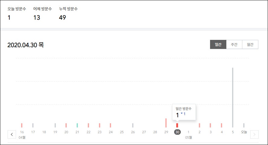 그럼 이 블로그에 방문자가 얼마나 들어오는지 함 보실까요?