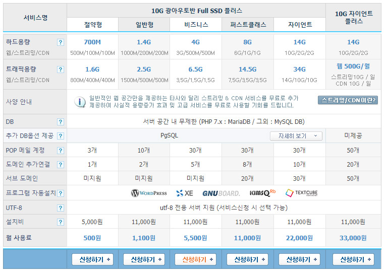 웹호스팅은 가장 무난한 카페24를 추천하며 많은 공간이나 트래픽이 필요하지 않기에 절약형으로 선택을 하면 됩니다.