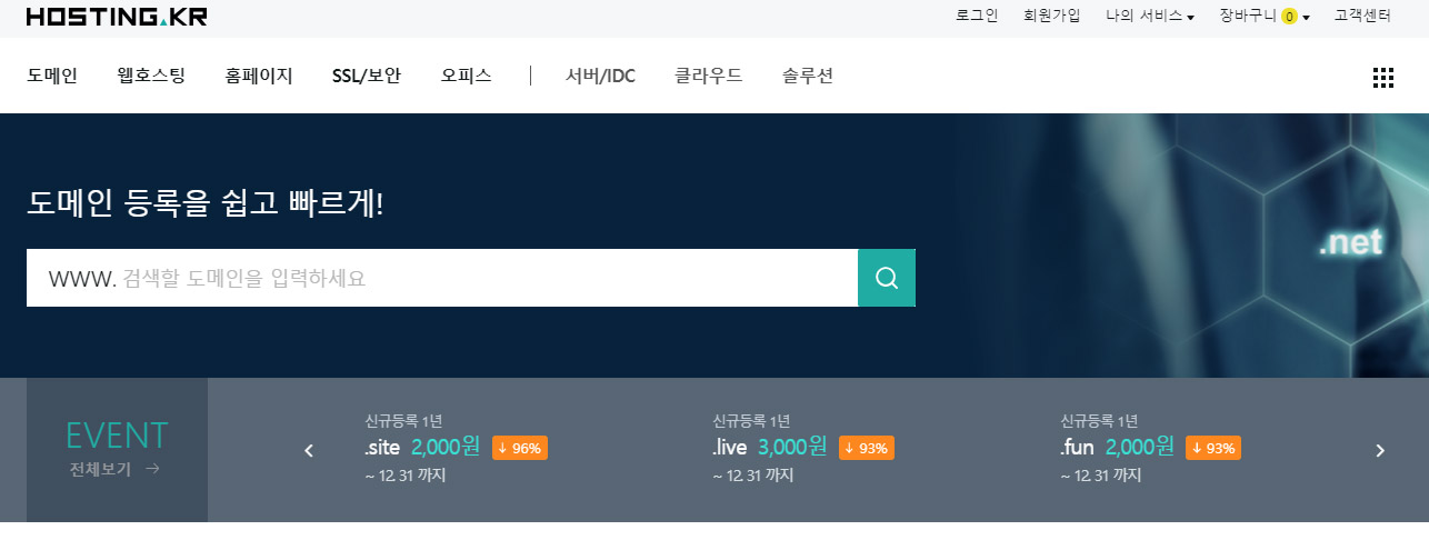 위의 이미지와 같이 프로모션을 진행하는 도메인은 2,000원에서 3,000원으로 구입할 수 있습니다.